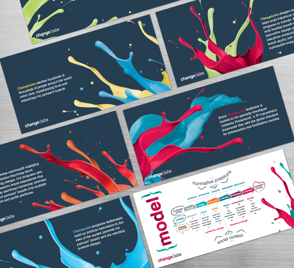 Jen was engaged to create the logo and brand look and feel for ChangeLabs, an inspired business with a mission to change the world through the design and execution of innovative, large scale behaviour change programs that create positive social impact. The resulting brand, with it’s dynamic paint device and bright colour palette captured the dynamism, creativity and boldness of the brand; the layers of paint ultimately representing their imprint and impact, it builds and changes and is an ever evolving process. Jen rolled the brand out across all touch points and continues to work with the ChangeLabs teams in Australia, the US and NZ on various projects.
